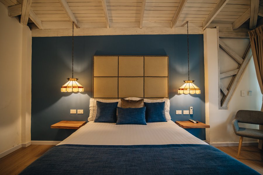 Esta habitación está equipada con una cama de qeen size (1.60 metros), aire acondicionado independiente, televisor LED de 42 pulgadas y baño privado completo.