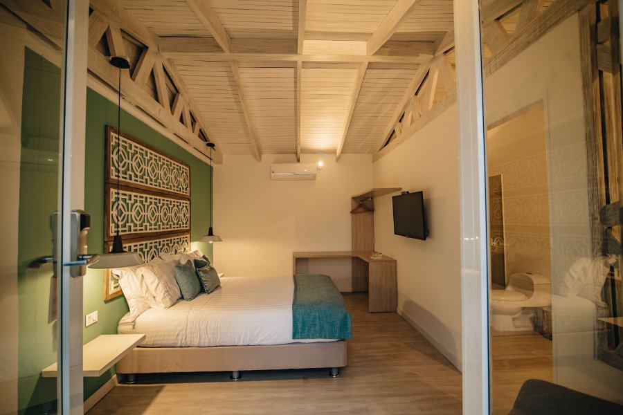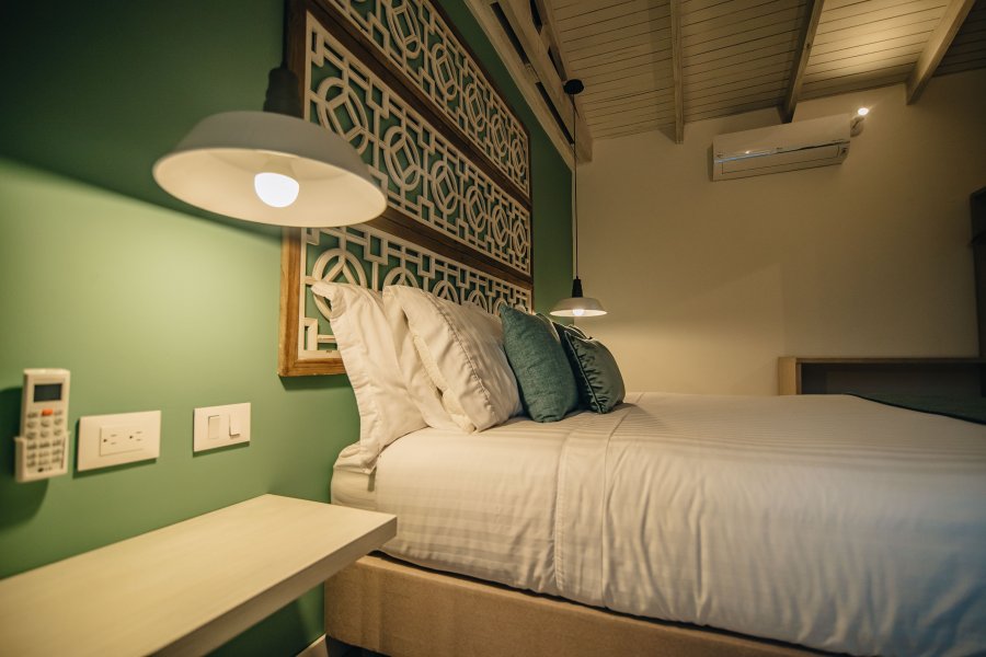 Esta habitación está equipada con una cama de qeen size (1.60 metros), aire acondicionado independiente, televisor LED de 42 pulgadas y baño privado completo.